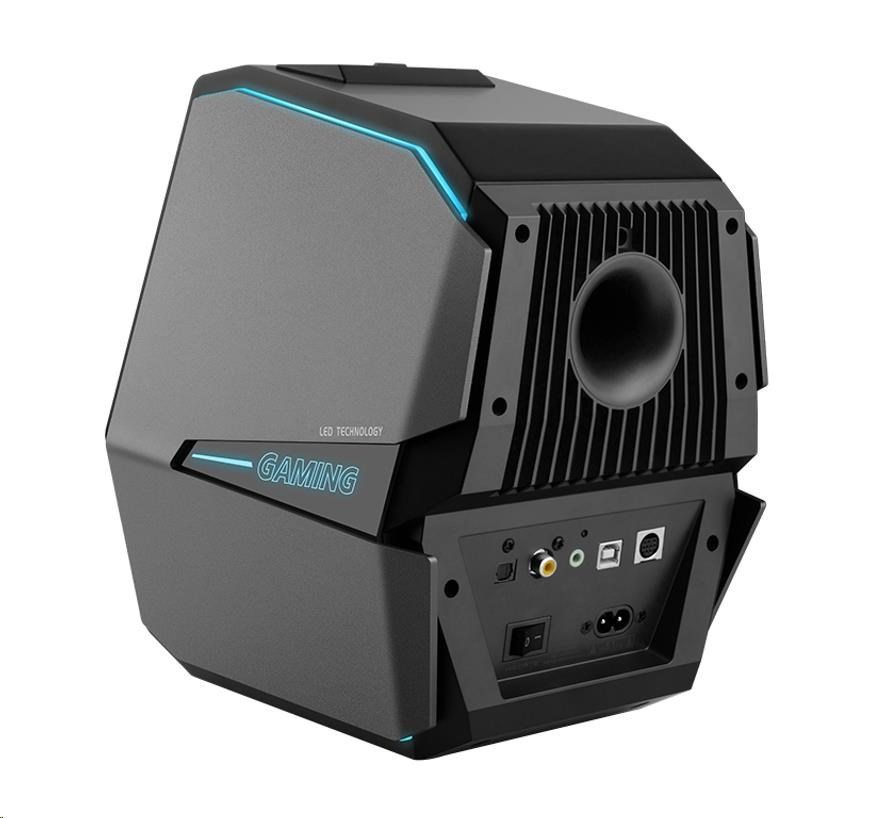 Spojením drevenej skrinky reproduktorov s hliníkovými bočnými panelmi umožnili dizajnéri zakomponovať špičkové osvetlenie RGB, čím vytvorili jedinečný vzhľad.
