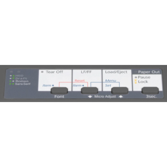 | Rýchlosť tlače | HighSpeed-Draft: 10 cpi: 347 znakov/s, 12 cpi: 357 znakov/s, Návrh: 10 cpi: 260 znakov/s, 12 cpi: 312 znakov/s, NLQ: 10 cpi: 65 znakov/s, 12 cpi: 78 znakov/s |