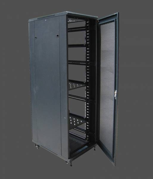Stojan je vybavený výškovo nastaviteľnými policami (3ks pre 42U), panelom so zásuvkami 230V, ventilačnou jednotkou a sadou upevňovacích prvkov. Uzamykateľné kovové dvere na prednej a zadnej stene. Odnímateľné bočné kryty s možnosťou montáže zámku. Dodávané v rozloženom stave.