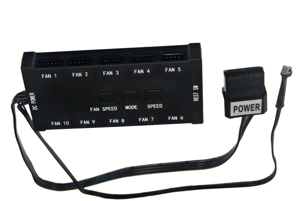 - riadiaca jednotka umožňuje pripojenie až 10ks ventilátorov a ovládanie tlačidlami priamo na jednotke, napájanie jednotky cez konektor "molex" z PC zdroja