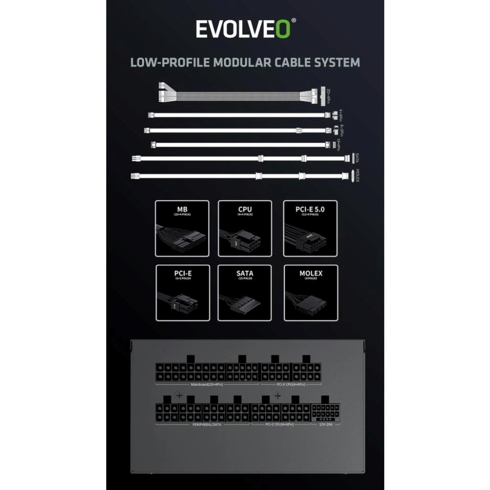 EVOLVEO G650 zdroj 650W, 80+ GOLD, ATX 3.1, aPFC, 140 mm ventilátor