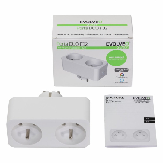 EVOLVEO Porta DUO F32, chytrá Wi-Fi dvojzásuvka s měřením spotřeby