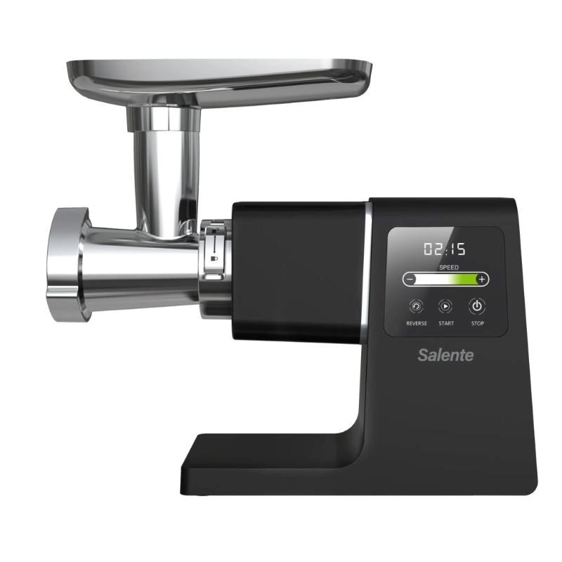 Vrcholom komfortu u masomlynky Salente MeatPlus je dotykový digitálny displej so sliderom, ako ho poznáte zo špičkových varných dosiek, kedy stačí prstom len jemne prejsť doľava alebo doprava a okamžite sa reguluje rýchlosť otáčok. Tento spôsob ovládania je nielen veľmi moderný, elegantný, ale hlavne rýchly a zaručuje dlhú životnosť na rozdiel od bežných mechanických ovládacích prvkov. Viete si to predstaviť – máte ruky od mäsa a tuku a potrebujete rýchlo a spoľahlivo regulovať otáčky a tým aj rýchlosť mletia. Displej stačí potom zotrieť vlhkým handričkou a je hotovo.