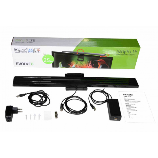 EVOLVEO Xany 5 LTE, 230/5V, aktivní pokojová anténa DAB+/DVB-T2, filtr LTE