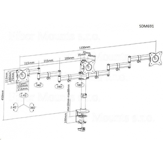 Fiber Mounts SDM691 - stolní držák na 3 monitory