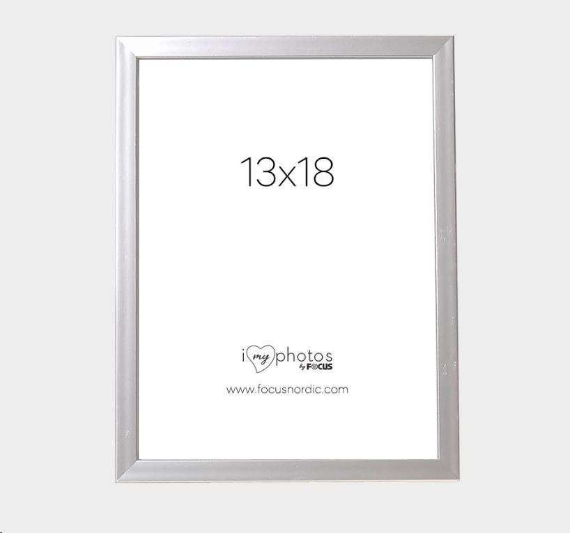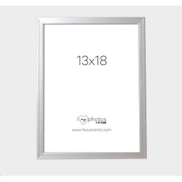 Strieborný obruč s tenkým profilom. Obruč je vyrobená z plastu. Rámček je dodávaný s skutočným sklom, ktoré na fotografiách zvýrazní to najlepšie. So stojanom vzadu, ktorý umožňuje umiestniť rámček na polici alebo stôl. Profil rámčeka má hĺbku 13 mm a šírku 13 mm. Veľkosť obrázka v rámčeku je 13x18 cm.