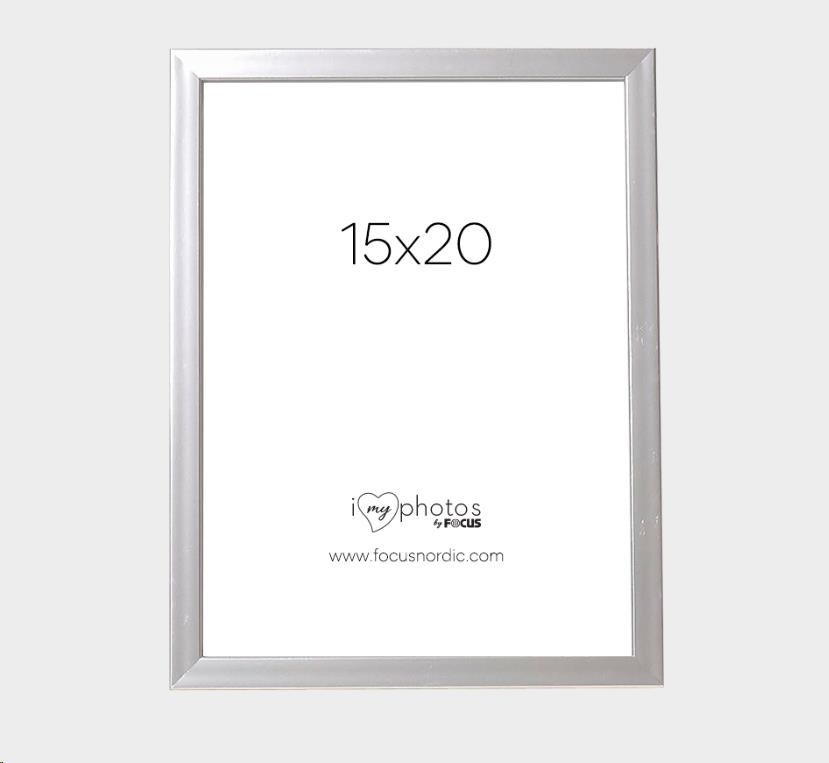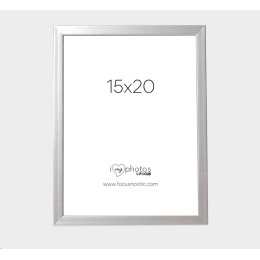 Strieborný obal s tenkým profilom. Obal je vyrobený z plastu. Rámček sa dodáva s skutočným sklom, ktoré na fotografiách zvýrazní to najlepšie. Se stojanom vzadu, ktorý umožňuje umiestniť rámček na polici alebo stôl. Profil rámčeka má hĺbku 13 mm a šírku 13 mm. Veľkosť obrázka v rámčeku je 15x20 cm.