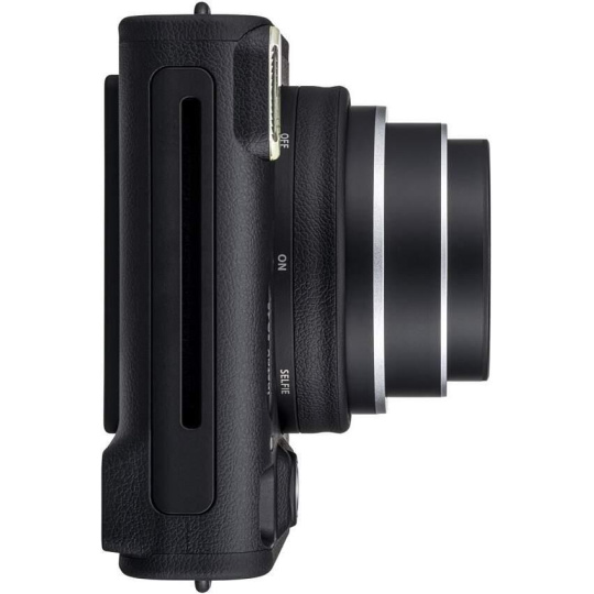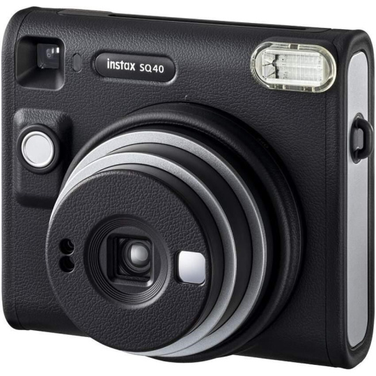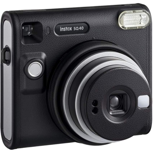 Fujifilm Instax SQ40 v elegantnom čiernom prevedení s jednoduchým ovládaním disponuje malým integrovaným zrkadlom pre selfie fotografie a funkciou automatickej expozície pre krásne osvetlené fotky.