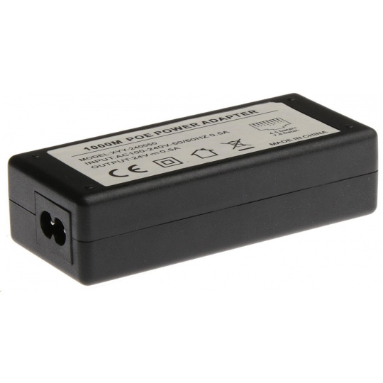HS12-2400 je pasívny, gigabitový, stabilizovaný PoE adaptér s uzemnením, LED indikáciou, výstupným napätím 24 V a max. s prúdom 0.5A. Maximálny výstupný výkon je 12 W. Napätie sa privádza na tieto piny: 4,5 (+), 7,8 (-). Súčasťou balenia je 2-kolíkový napájací kábel...