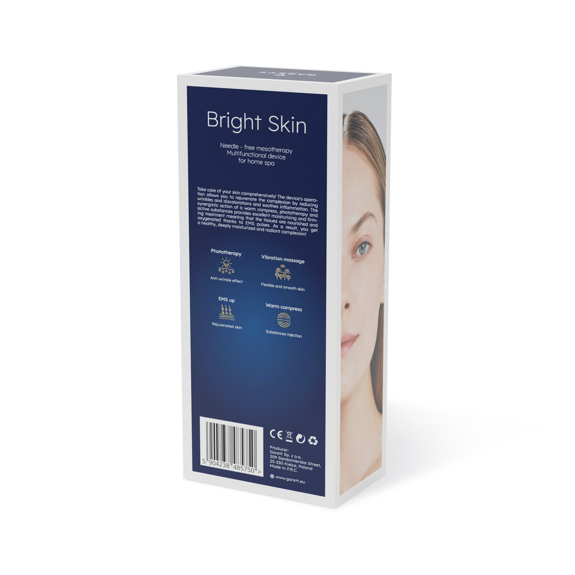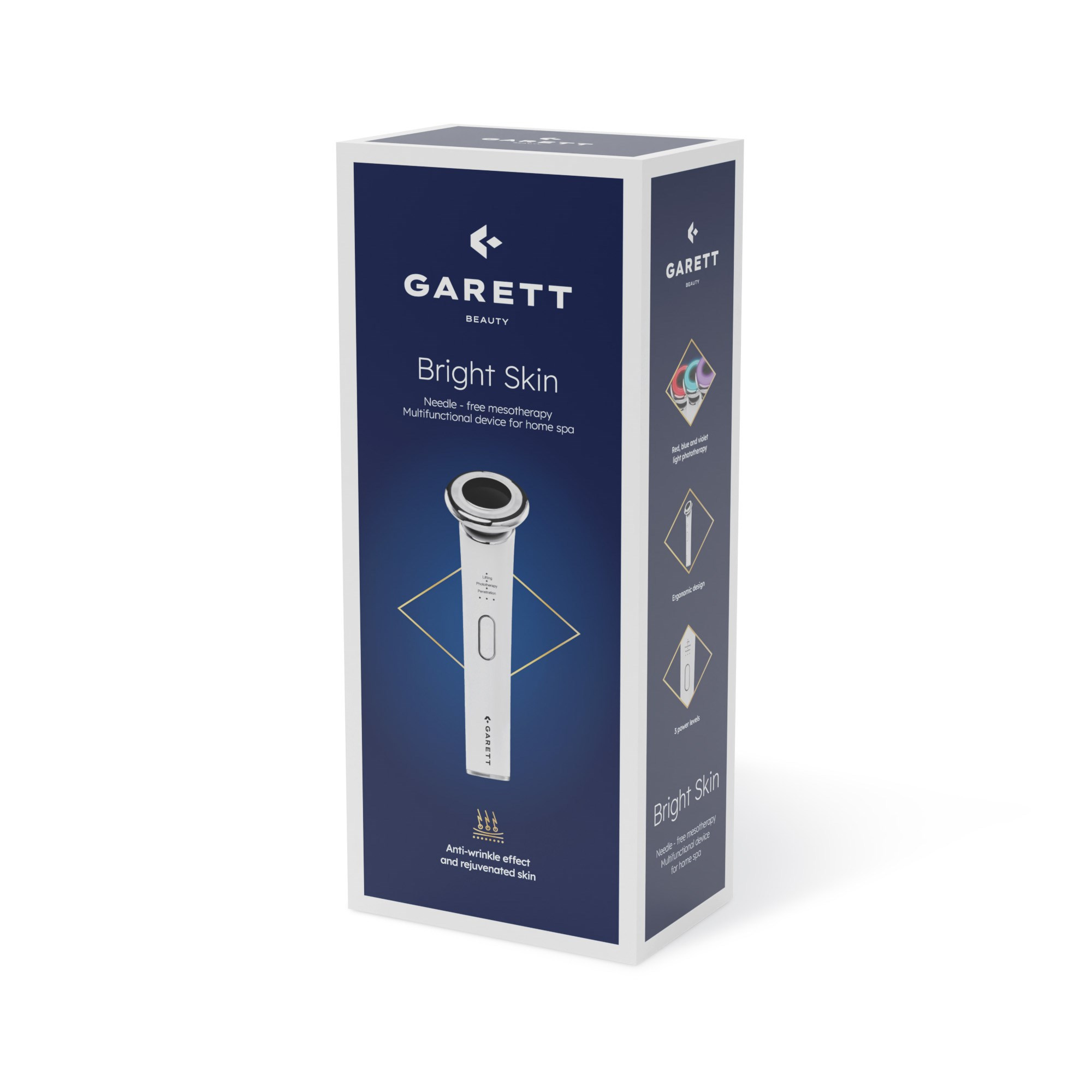 Ak chcete správne dbať o svoju tvár a nemáte čas ísť ku kozmetičke, venujte pozornosť zariadeniu Garett Beauty Bright Skin. Vďaka nemu môžete pohodlne doma vykonávať mezoterapiu a vaša pleť bude priamo žiariť. Tento typ ošetrenia vám pomôže napríklad pri problémoch s dvojitou bradou. Zariadenie má aj niekoľko ďalších užitočných funkcií, ako je svetelná terapia alebo sonické vibrácie. Okrem toho môžete využiť EMS prúdy a RF funkciu (elektromagnetické vlny).