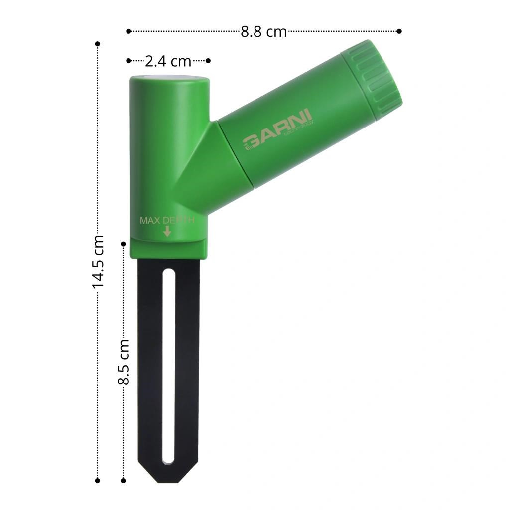 - Vlastný režim 0%AD a 100%AD pre ručné kalibrácie nízkej/vysokej hodnoty vlhkosti pre presnejšie meranie pre rôzne typy pôdy. Túto voľbu môžete vykonať na hlavnej jednotke meteorologickej stanice GARNI 3055 Arcus.