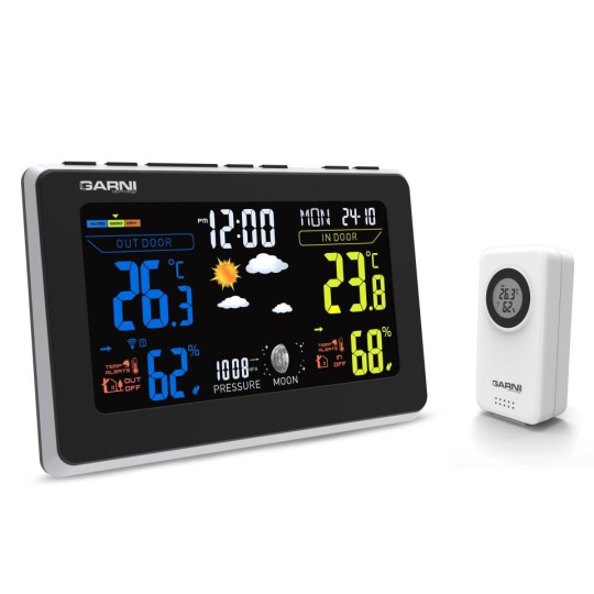 Tretia generácia meteorologickej stanice so špičkovým inverzným farebným VA displejom s časom riadeným rádiovým signálom DCF-77, budíkom, meraním vnútorného teplôt, relatívnej vlhkosti a absolútneho barometrického tlaku, bezdrôtovým čidlom na meranie vonkajšej teploty a relatívnej vlhkosti a USB portom pre napájanie externých zariadení