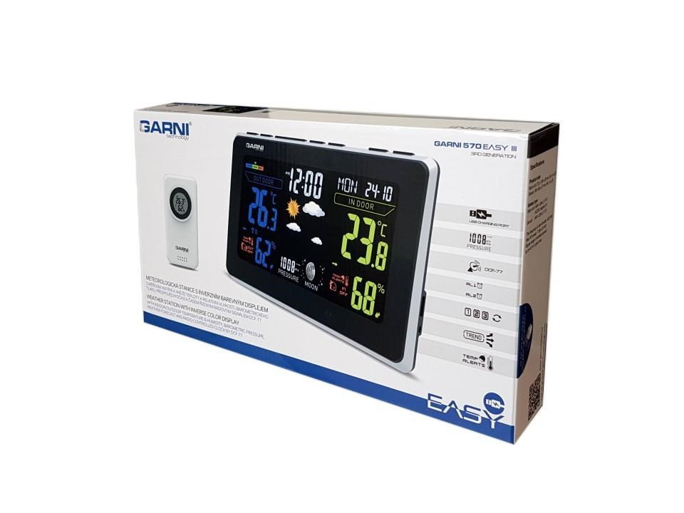 Tretia generácia meteorologickej stanice so špičkovým inverzným farebným VA displejom s časom riadeným rádiovým signálom DCF-77, budíkom, meraním vnútorného teplôt, relatívnej vlhkosti a absolútneho barometrického tlaku, bezdrôtovým čidlom na meranie vonkajšej teploty a relatívnej vlhkosti a USB portom pre napájanie externých zariadení