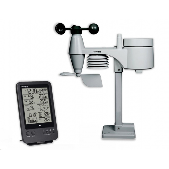 Meteostanica s meraním vnútornej a vonkajšej teploty, relatívnej vlhkosti, barometrického tlaku, rýchlosti a smeru vetra, zrážok a predpovede počasia
