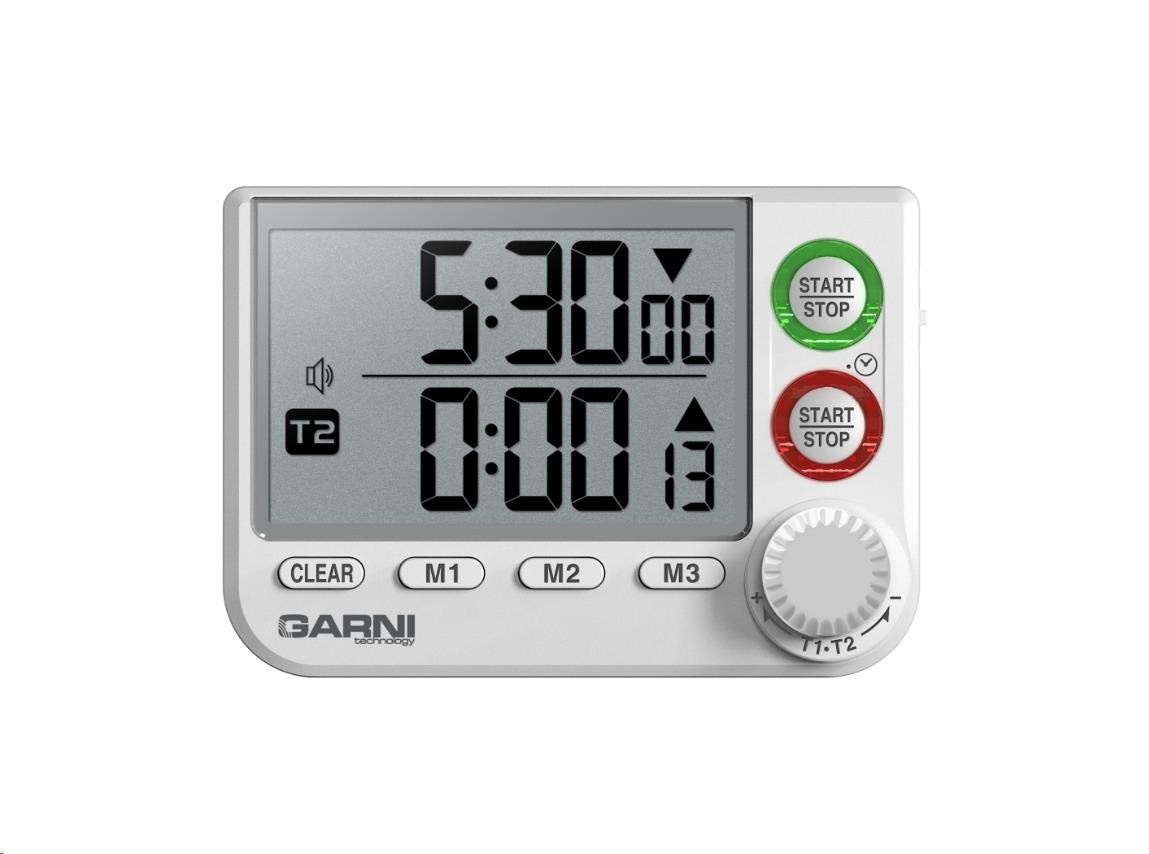 Časovač (minútka) s stopkami a hodinami s inteligentným otočným gombíkom pre jednoduché a rýchle nastavenie
