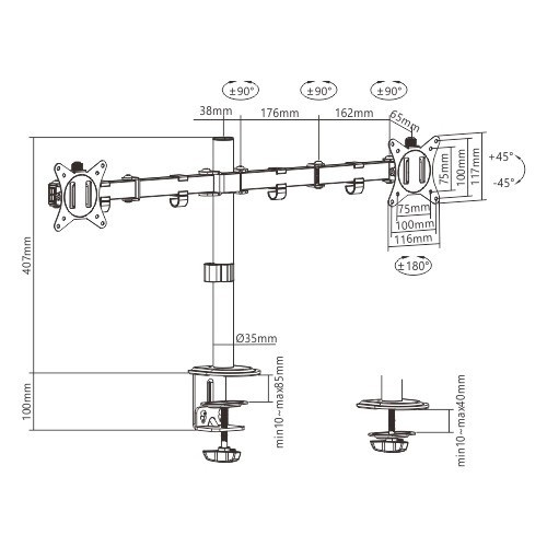 - Stolný držiak monitoru s dvojitým ramenom monitoru
