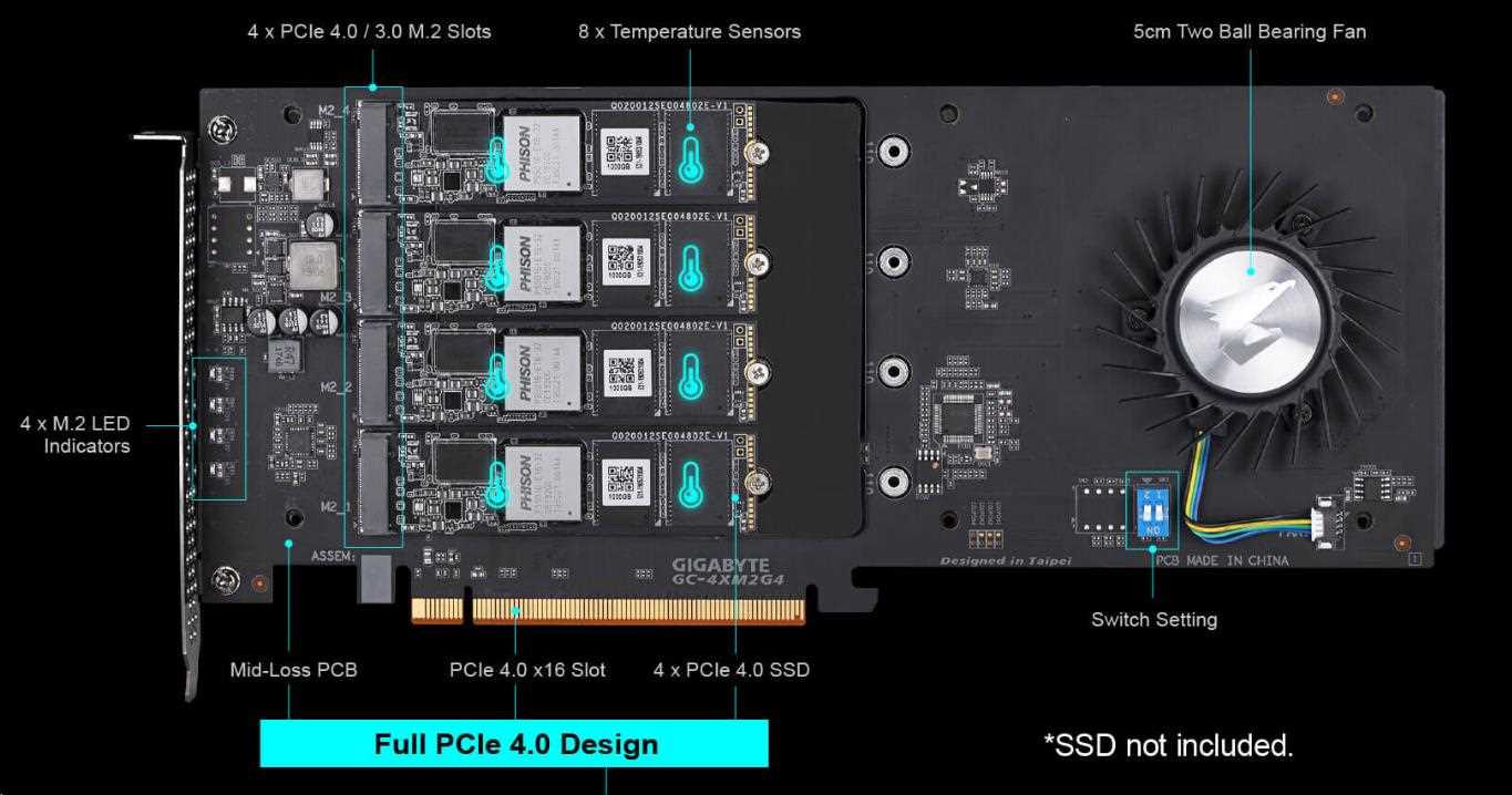- Podporuje kľúč M typu 2242/2260/2280/22110 M.2 moduly PCI Express Gen4 x4 64Gb/s