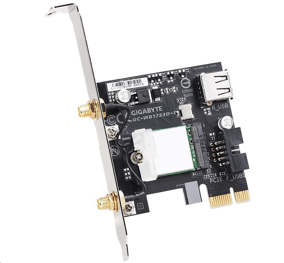 GIGABYTE GC-WB1733D-I, WiFi 802.11ac, Bluetooth 5, PCIe, Dual Band, 1734 Mb/s