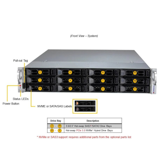 | Úložisko | Až 12x 3.5" SATA hot-swap + 2x M.2 NVMe |