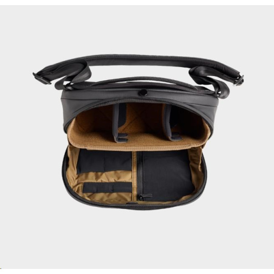 Medzi polstrovaným popruhom a otočným ramienkovým popruhom je extra popruh, navrhnutý pre maximálne pohodlie. Noste brašnu, ako vám to najviac vyhovuje (taška cez rameno, cross body alebo popruh-sling). Zadná časť popruhu má zadný panel z EVA peny pre lepšie pohodlie a prúdenie vzduchu. K dispozícii je aj koliesková verzia pre zavazadlo, aby si vaše rameno pri cestovaní oddýchlo. Na prednej a spodnej strane sling popruhu sú vonkajšie molle popruhy, ak potrebujete mať so sebou statív alebo bundu. BONUS: Popruh sa perfektné hodí do brašny Camera Bag 35L.