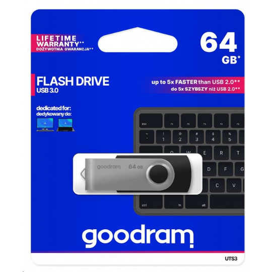 GOODRAM Flash Disk 64GB UTS3, USB 3.0, čierna