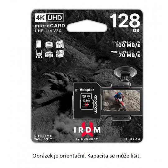 MicroSD karta IRDM UHS-I U3 prináša vysoký výkon a spoľahlivosť pre každého, kto chce natáčať 4K a spomalené videá alebo robiť vysoko kvalitné snímky JPEG/RAW v režimoch rýchle série.