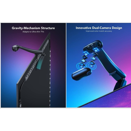Inovatívny dizajn kamery so dvoma šošovkami zachytáva obsah presnejšie a vďaka tomu synchronizuje farby z obrazovky s väčšou presnosťou. Montážna konštrukcia umožňuje jednoduchšiu inštaláciu na hornú časť televíznej obrazovky, vrátane ultra tenkých TV.