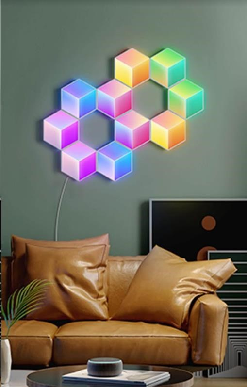 Vylepšite interiér a herné, filmové a hudobné zážitky s dizajnovým svetlom Hexa PRO 3D Smart LED. Vďaka technológii RGBIC zobrazuje až 57 farieb naraz. Farby si môžete nastaviť po jednotlivých sekciách a kreatívne si pohrať s 3D efektom osvetlenia. Celkovo dokáže zobraziť až 16 miliónov farieb s intenzitou 1-100%. Určite si vyberiete z mnohých režimov osvetlenia a pri počúvaní obľúbenej hudby si môžete zvoliť aj zo 6 rytmických režimov. Svetlá sa ovládajú hlasovo cez Siri, Amazon Alexa alebo Google Assistant alebo prostredníctvom aplikácie Govee Home na chytrom telefóne alebo tablete. Svetlo je určené na inštaláciu na stenu a jeho tvar si môžete prispôsobiť podľa vlastnej fantázie. Jednoduchá inštalácia bez vŕtania s životnosťou až 50.000 hodín.