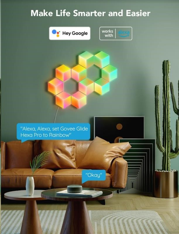 Govee Hexa Pro ponúka 38 rôznych režimov pre dokonalé naladenie svetelnej atmosféry. Govee technológia RGBIC dokáže zobraziť až 57 farieb naraz z celkového rozsahu 16 miliónov farieb pri intenzite 1-100%. Môže sa tiež pochváliť životnosťou až 50.000 hodín.