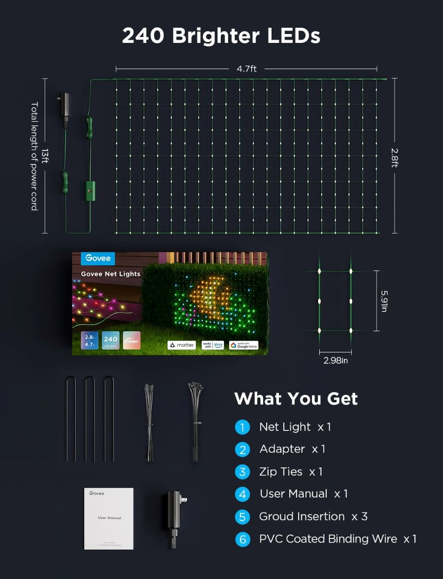 Govee RGBIC vonkajšia svetelná sieť - 1,2 x 1,2m Matter