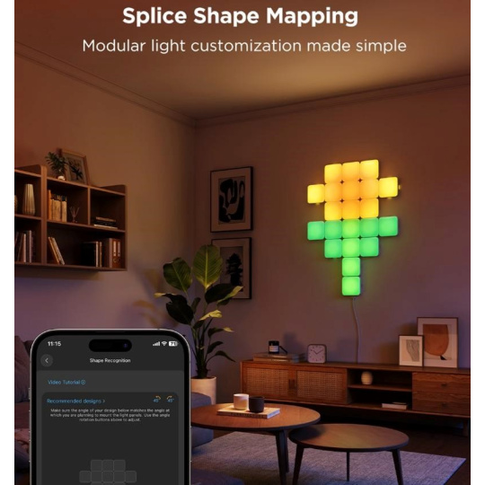 Svetlá sa dajú ľahko pripevniť pomocou predinštalovanej pásky 3M, čo znamená, že nie je potrebné žiadne vŕtanie ani komplikácie. Balenie obsahuje 6 panelov, ktoré môžete ľubovoľne kombinovať do rôznych tvarov a konfigurácií – dokonca môžete spojiť až 70 panelov naraz! Ovládanie svetiel je jednoduché vďaka šikovnej aplikácii, ktorá umožňuje výber z prednastavených scén, hudobných vizuálov a vlastných nastavení farieb.