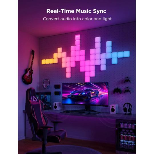 Govee Mini Panel Lights sú kompatibilné s Google Home, Matter protocol, Amazon Alexa a podporujú väčšinu inteligentných asistentov. To znamená, že svetlá môžete ovládať hlasom, zapojiť ich do automatizácie inteligentnej domácnosti alebo naplánovať ich zapnutie a vypnutie pomocou zabudovanej funkcie časovača. Každý panel je navrhnutý s ohľadom na nízku spotrebu energie a vynikajúcu kvalitu osvetlenia, ktoré premení akýkoľvek priestor. Vďaka možnosti vizualizácie hudby svetlá reagujú na rytmus, čím prinášajú do vášho domova úplne nový rozmer zábavy a atmosféry.