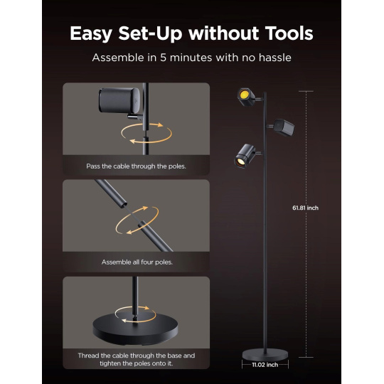 Govee Tree Floor Lamp je pripravená na okamžité použitie bez zložitej montáže. Stačí lampu rozbaliť, zapojiť a spustiť aplikáciu – všetko je rýchle a intuitívne. Vďaka tomu si môžete vychutnávať chytré osvetlenie okamžite, bez zbytočných starostí alebo nástrojov.