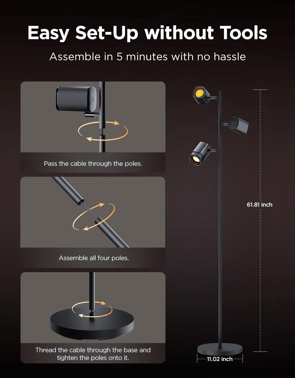 Govee Tree Floor Lamp je pripravená na okamžité použitie bez zložitej montáže. Stačí lampu rozbaliť, zapojiť a spustiť aplikáciu – všetko je rýchle a intuitívne. Vďaka tomu si môžete vychutnávať chytré osvetlenie okamžite, bez zbytočných starostí alebo nástrojov.