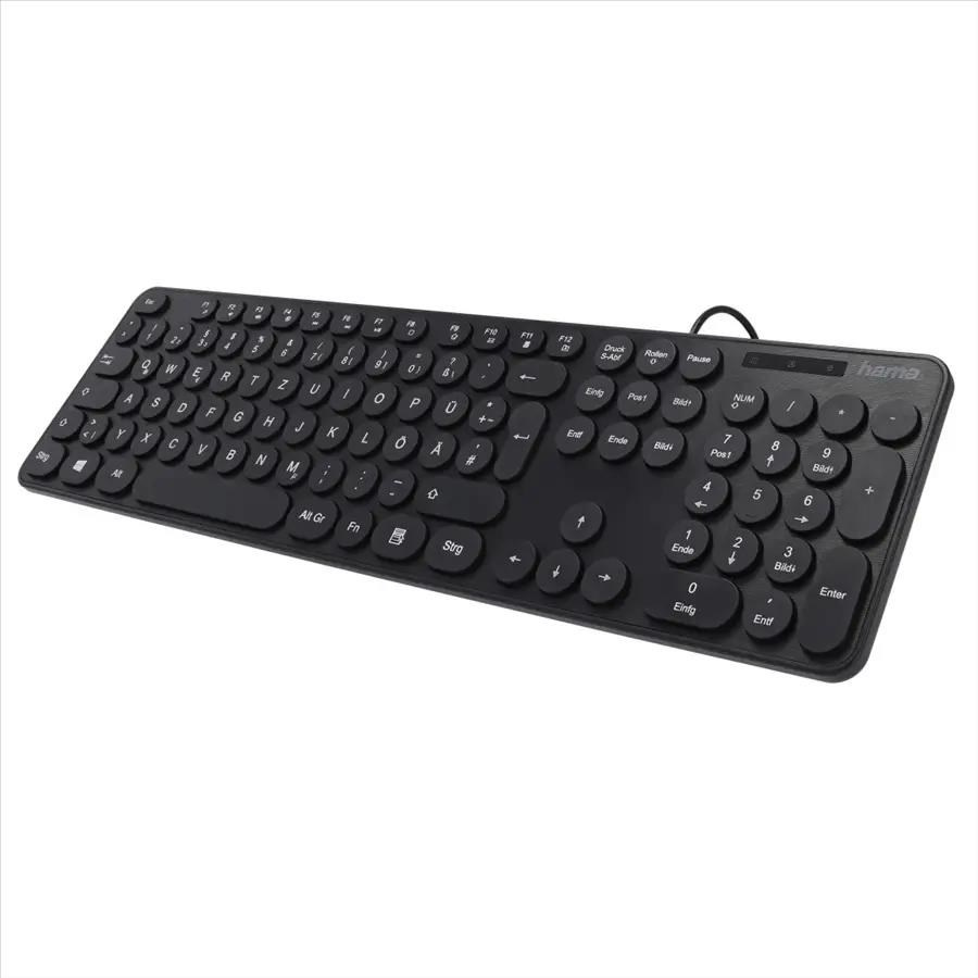 - moderná multimediálna klávesnica s okrúhlymi klávesmi v štýle písacieho stroja pre zadávanie údajov do PC alebo notebooku - tlmené tlačidlá umožňujú tichú a nerušenú prácu - laserom vypálené znaky s vysokou trvanlivosťou - mediálne funkcie (pomocou klávesu FN) - plnoformátové klávesové pole pre intuitívne zadávanie - nie je potrebný žiadny softvér, jednoducho pripojíte a používate - USB pripojenie - CZ/SK layout Systémové požiadavky: - operačný systém: Windows 10/8/7/Vista Technické parametre: - pripojenie: USB A vidlica - počet kláves: 105 - rozmery: 43,8 x 12 x 2,6 cm - dĺžka kábla: 180 cm - hmotnosť: 558 g - farba: čierna.