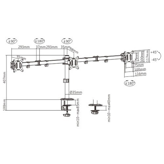 GEMBIRD Držák 3 monitorů na stůl MA-D3-01, naklápěcí, až do 27” a 7kg, černý