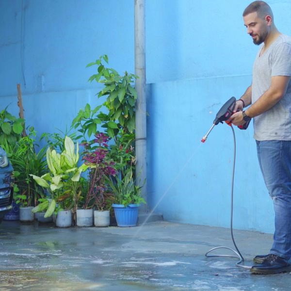 Širokouhlá postreková tryska akumulátorového vysokotlakového čističa je ideálna na čistenie veľkých plôch, zavlažovanie záhrady, umývanie auta a ďalšie.