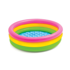 Baby bazén sa skladá zo troch samostatne nafukovacích prstencov. Podlaha z mäkčeného PVC zabraňuje odieraniu a pôsobí protisklzovo. Bazén je možné umiestniť kdekoľvek, kde bude vyhovovať najmenším plavcom aj ich rodičom. Je vhodné pod bazén dokúpiť ochrannú podložku.Celkový objem vody v bazéne: 0,07 m3Hmotnosť: 4,14 kgOstatné vybavenie: s