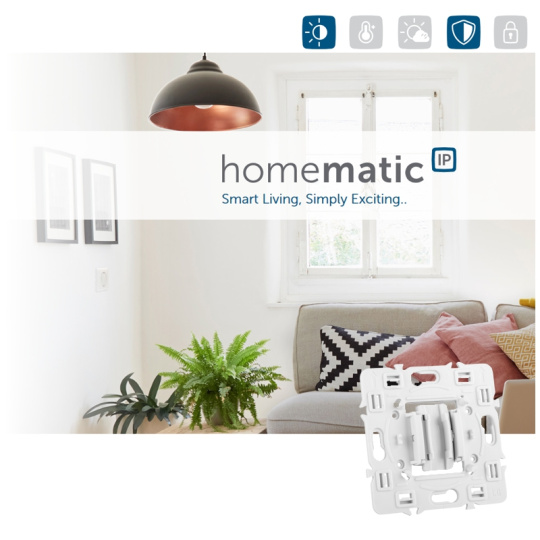 Adaptér umožňuje integrovať rámčeky a kryty modelovej rady Céliane alebo Mosaic od spoločnosti Legrand. Adaptér sa integruje ku spínaciemu akčnému prvku HmIP-BSM-I.