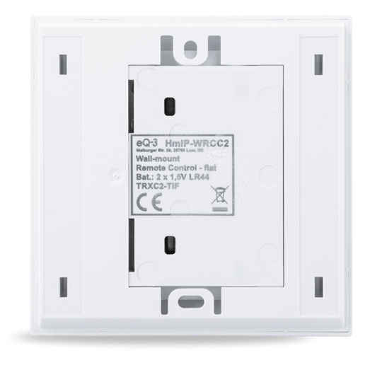 Programovateľný, bezdrôtový Nástenný diaľkový ovládač (HmIP-WRCC2) je súčasťou systému inteligentnej domácnosti Homematic IP. Dve tlačidlá na manuálne ovládanie zariadenia alebo vzdialené riadenie systémových funkcií inteligentnej domácnosti. Zariadenie môže ovládať osvetlenie, rolety, žalúzie, garážové dvere a podobne.