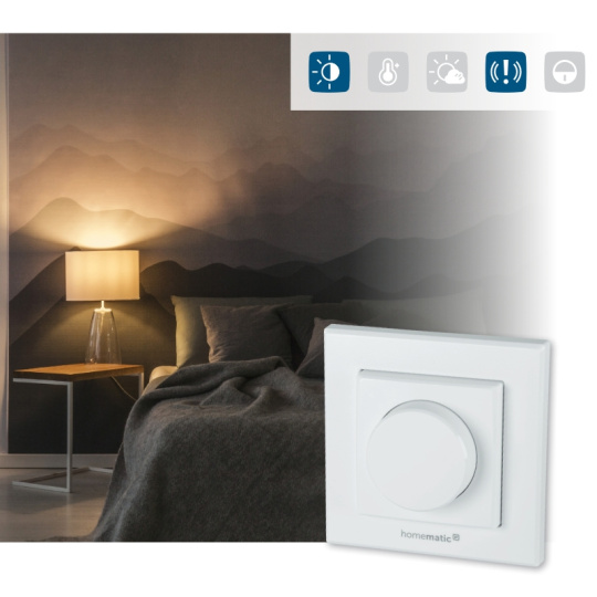 Programovateľné bezdrôtové Otočné tlačidlo (HmIP-WRCR) je súčasťou systému inteligentnej domácnosti Homematic IP.