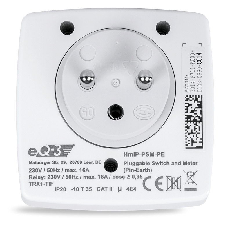Spínaná bezdrôtová zásuvka (HmIP-PSM-PE) s funkciou merania umožňuje spínanie pripojených zariadení. Umožní spínať a vypínať pripojené spotrebiče, merať ich spotrebu energie, napätie, prúd a výkon. Pripojené zariadenia je možné ovládať manuálne priamo tlačidlom na zásuvke alebo vzdialene v kombinácii s Centrálnou jednotkou (HmIP-HAP) a mobilnou aplikáciou Homematic IP.