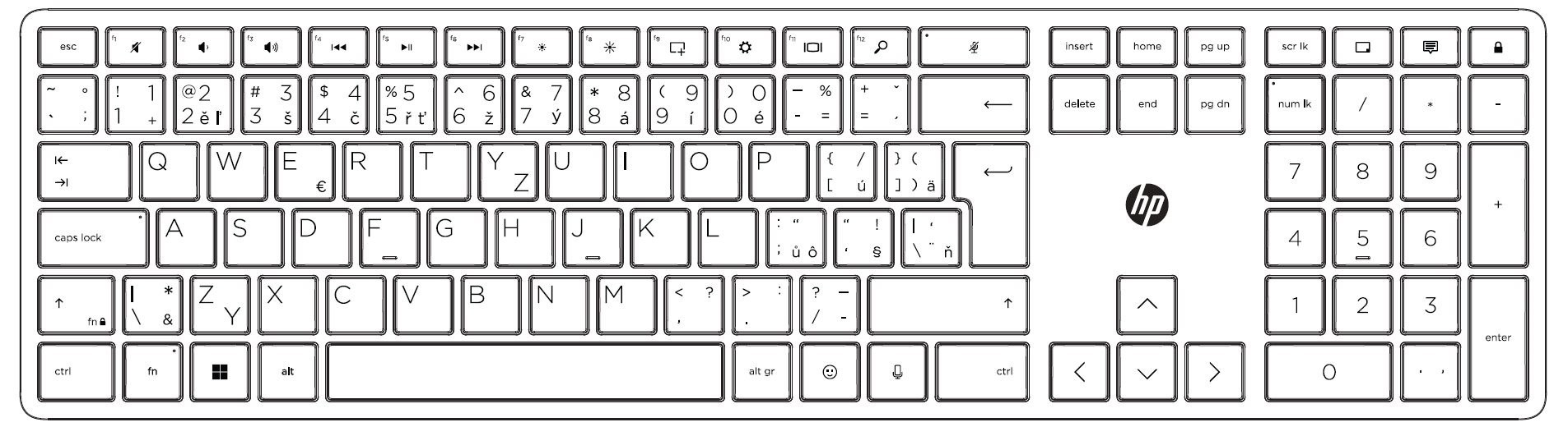 Trojzónová káblová klávesnica HP 125 plnej veľkosti obsahuje nožičky nastaviteľné o 0 až 6 stupňov na pohodlné písanie. Indikátor LED funkcií Caps Lock, Num Lock a Fn Lock vám navyše ľahko pripomenie, keď sú tieto funkcie aktívne.
