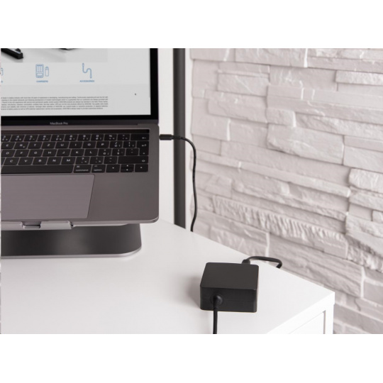 Nabíjací adaptér s konektorom USB typu C a podporou technológie Power Delivery umožňuje veľmi rýchle nabíjanie notebookov, tabletov, smartfónov alebo iných zariadení s výkonom až 45 W.