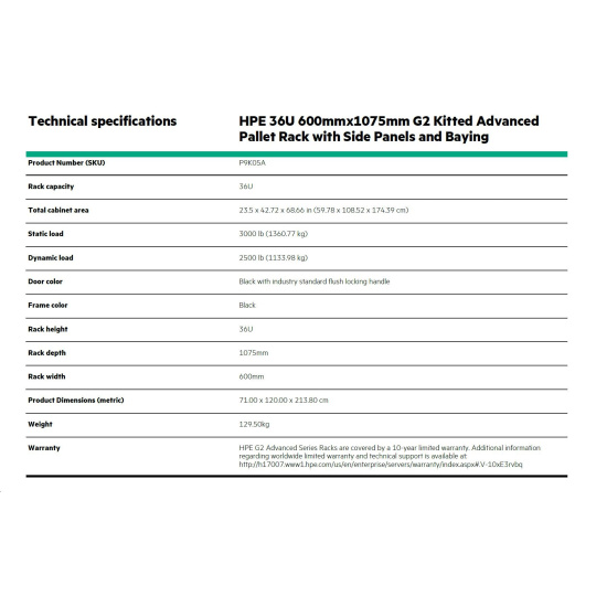 HPE Rack 36U 600mmx1075mm G2 Kitted Advanced Pallet Rack with Side Panels and Baying