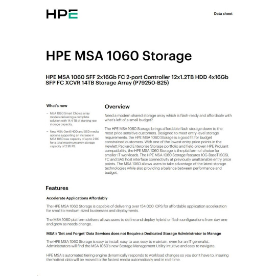 HPE MSA 1060 SFF 2x16Gb FC 2-port Controller 12x1.2TB HDD 4x16Gb SFP FC XCVR 14TB Storage Array.
