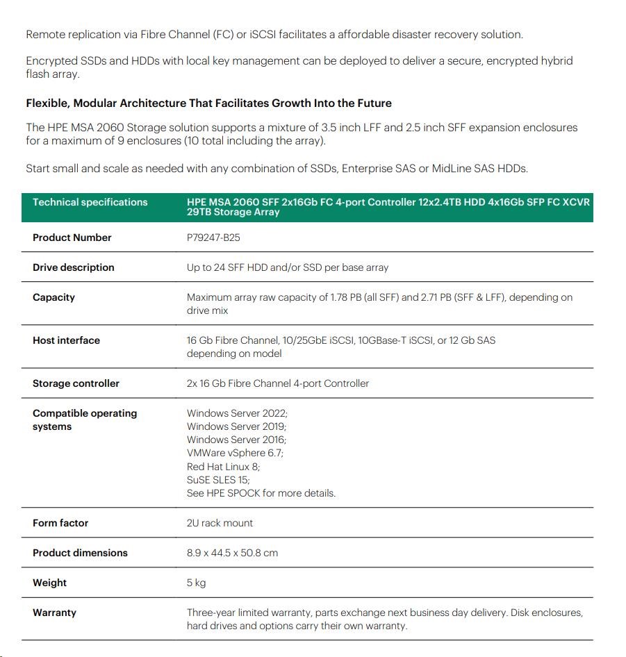 HPE MSA 2060 SFF 2x16Gb FC 4-port Controller 12x2.4TB HDD 4x16Gb SFP FC XCVR 29TB Storage Array Smart Choice