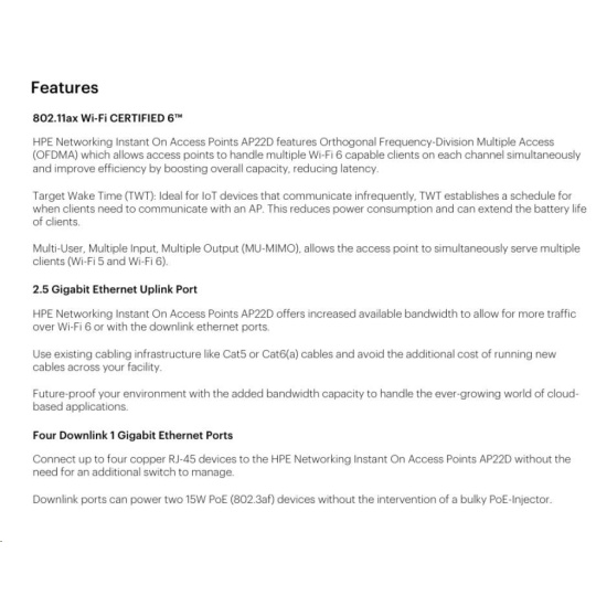 HPE Networking Instant On Access Point AP22D Bundle with PSU Dual Radio 2x2 Wi-Fi 6 (EU) AP22D.