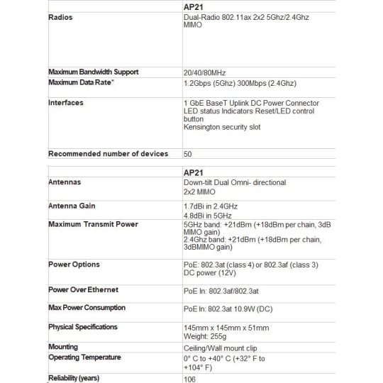 - The HPE Networking Instant On Access Point AP21 is a dual radio indoor access point designed to bring connectivity to small spaces. This Wi-Fi CERTIFIED™ 6 access point offers modern WI-Fi standards in a small footprint to enhance the connectivity of your network for up to 50 devices. The dual-band radios offer suitable range for a 1500 sq ft space at an affordable price with the same features as other more costly access points. The HPE Networking Instant On AP21 can also be used with Smart Mesh with any other Instant On access point to extend your network coverage without needing to run new cables—HPE Networking Instant On AP21, small yet mighty coverage for your growing wireless needs.