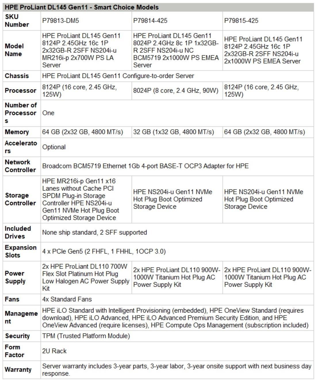 HPE PL DL145g11 AMD 8024P (2.4/8C) 1x32G 2SFF NS204i-u 2x1000W 4p1Gb NBD333 Smart Choice